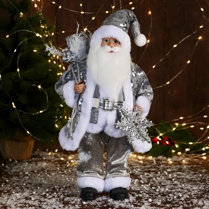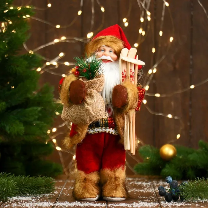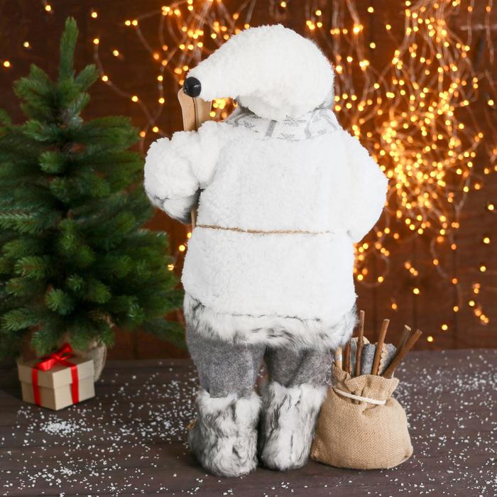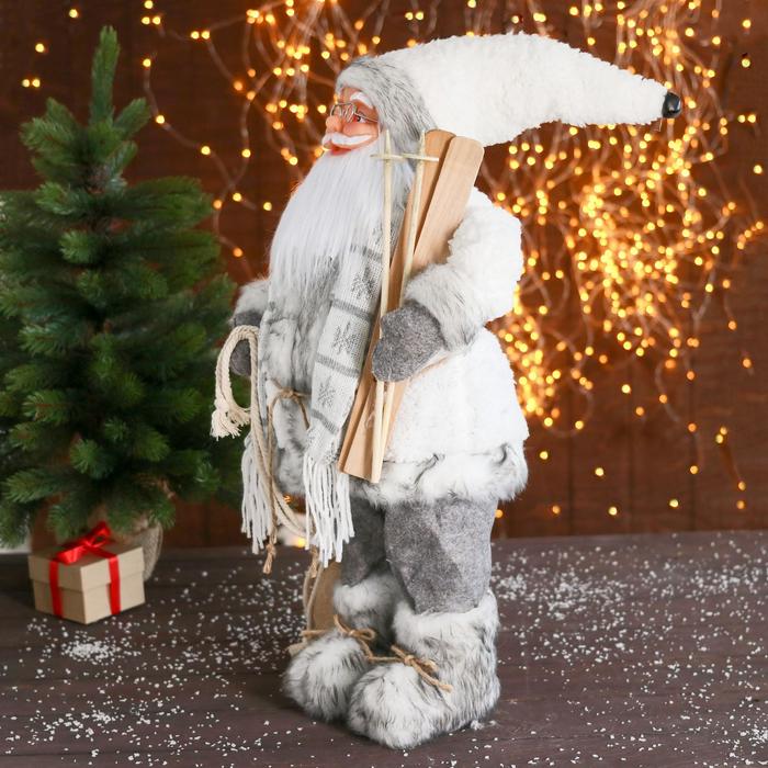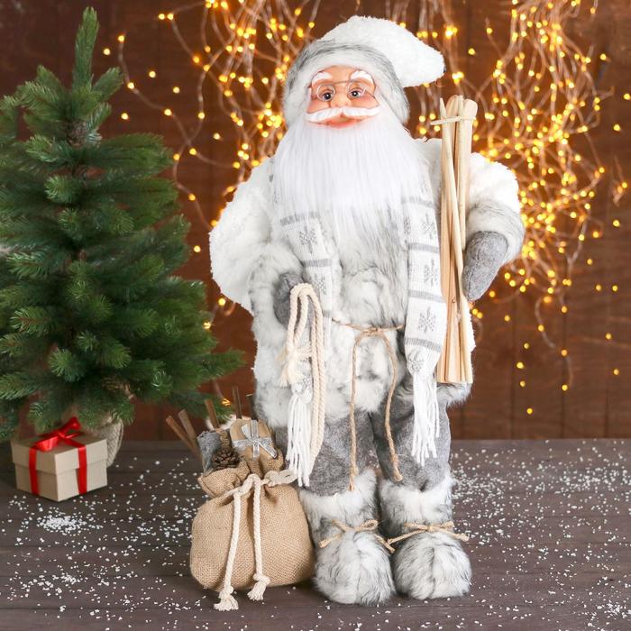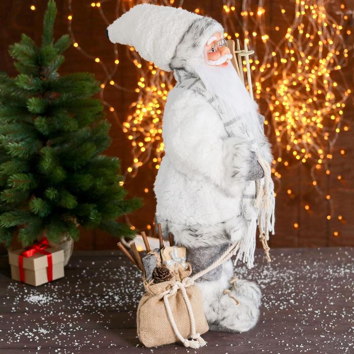Дед Мороз под ёлку «Зимнее волшебство. В белой шубке с лыжами», 60 см — Характеристики