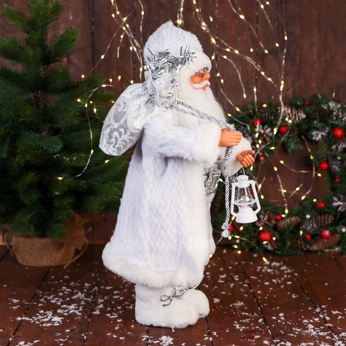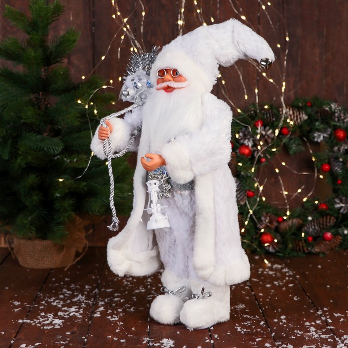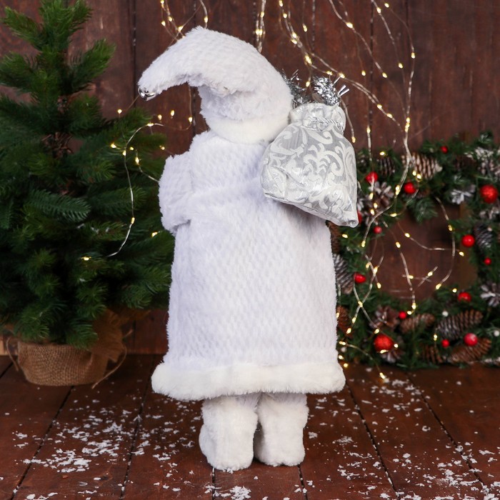 Дед Мороз под ёлку «Зимнее волшебство. В блестящем жилете», 50 см, серебристо-белый — Характеристики