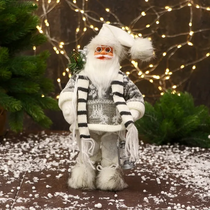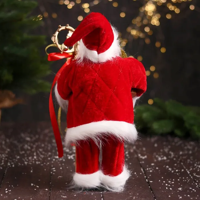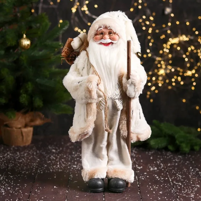 Дед Мороз под ёлку «Зимнее волшебство. В кафтане с мехом и узорным посохом», 30 см, бело-красный — Характеристики