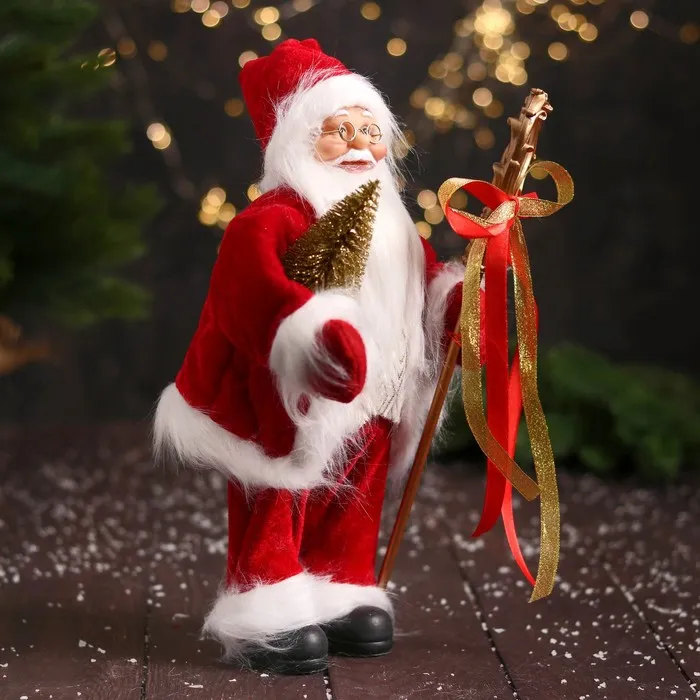 Фигурка «Дед Мороз в кафтане с мехом и узорным посохом, 30 см» станет изысканным дополнением Вашего новогоднего декора и создаст атмосферу праздника. Эта композиция органично дополнит пространство под ёлкой, на каминной полке или в фотозоне.