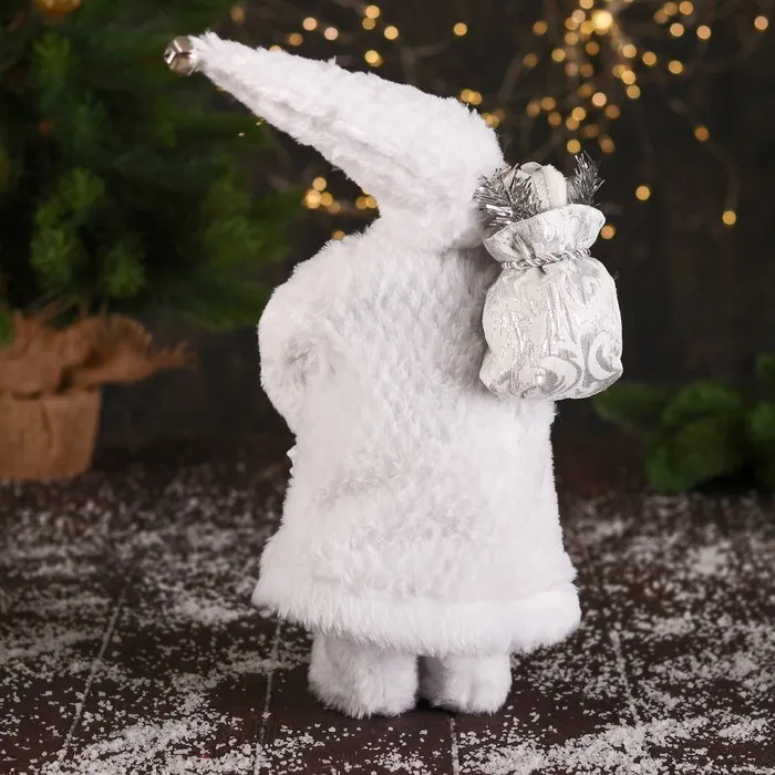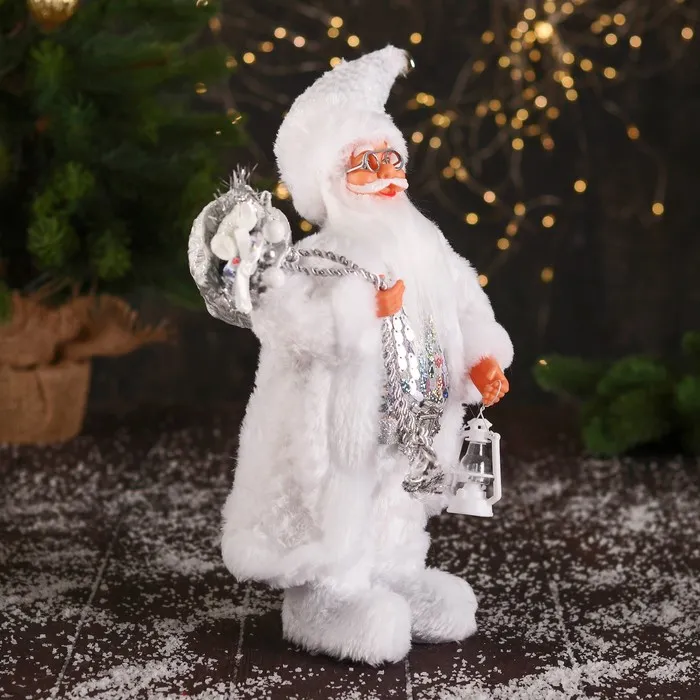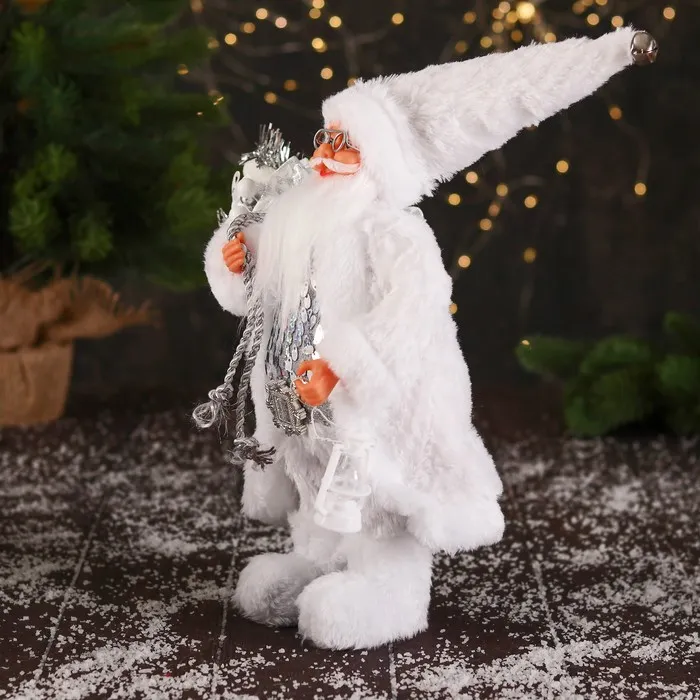 Дед Мороз под ёлку «Зимнее волшебство. В кафтане с пайетками и с фонариком», 30 см, серебристо-белый — Характеристики