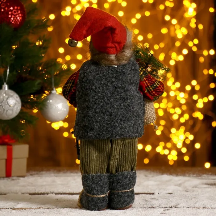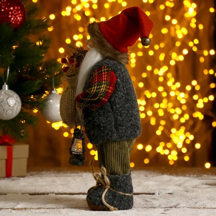 Дед Мороз под ёлку «Зимнее волшебство. В клетчатой шубке с фонариком», 30 см — Характеристики