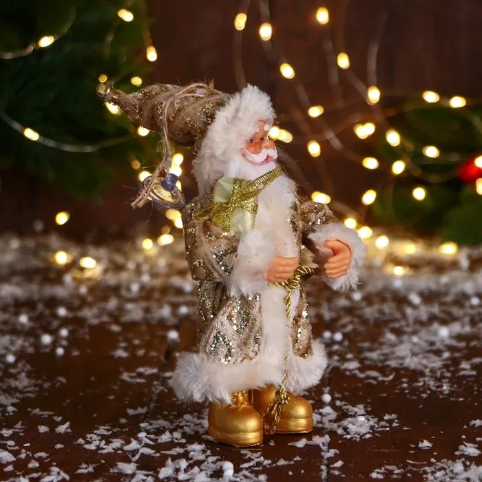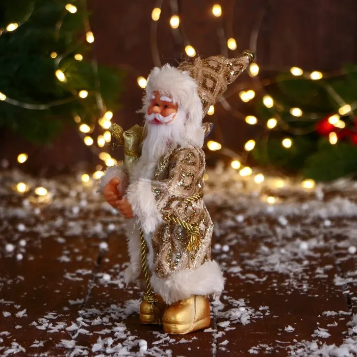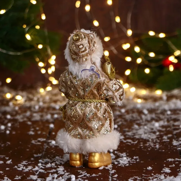 Дед Мороз под ёлку «Зимнее волшебство. В колпаке, с подарком», 17 см, золото — Характеристики