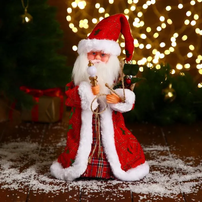 Эта фигурка вызывает воспоминания о детских сказках, когда Дед Мороз спешил с подарками через снег. Она создаёт атмосферу тепла и ожидания, становясь центром новогодних сборов.