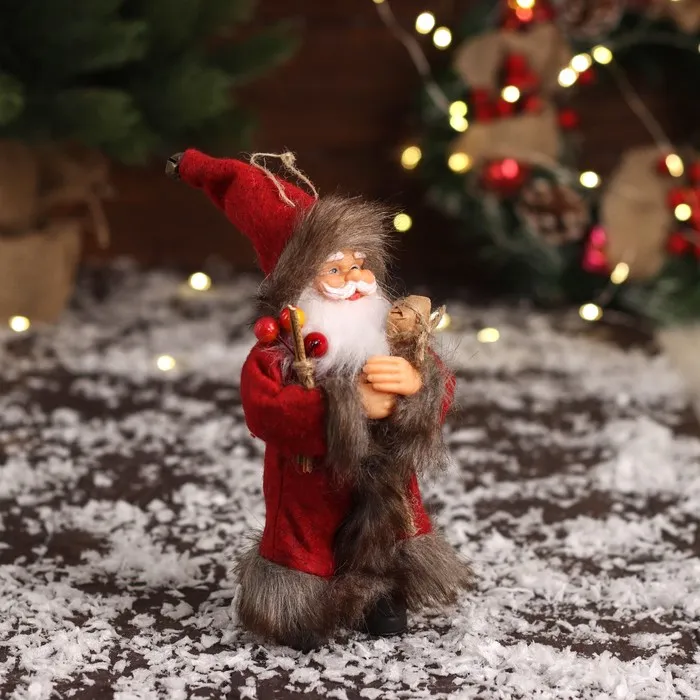 Дед Мороз под ёлку «Зимнее волшебство. В красной шубке, с хворостом», 16 см — Характеристики
