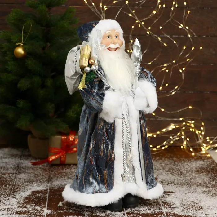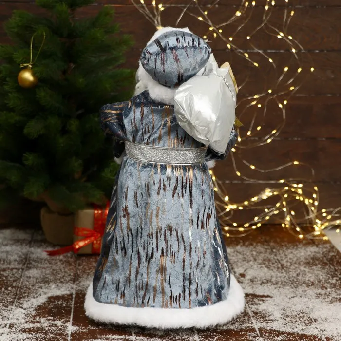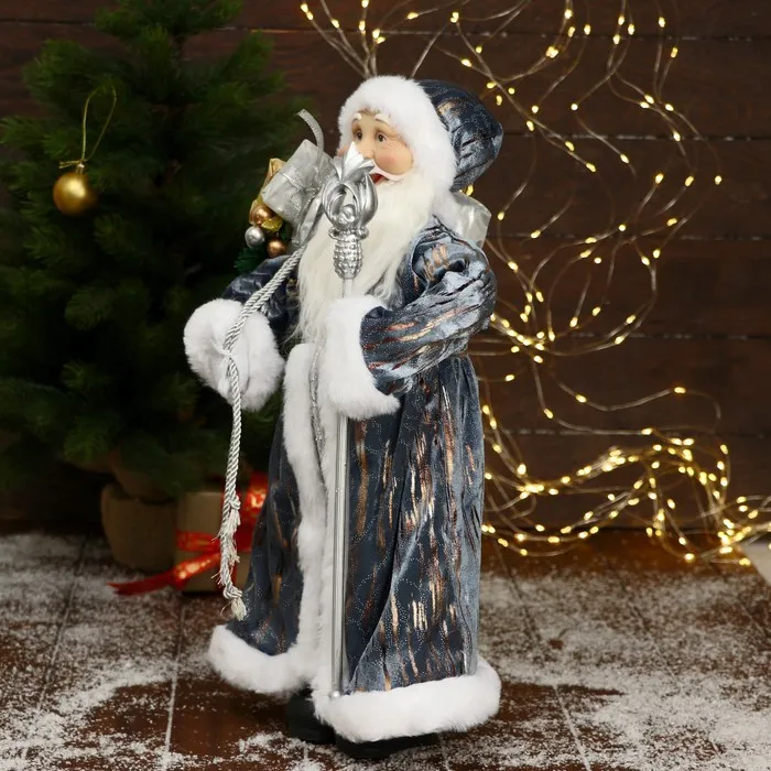 Дед Мороз под ёлку «Зимнее волшебство. В серо-синей шубе, с посохом и подарками», 45 см — Характеристики