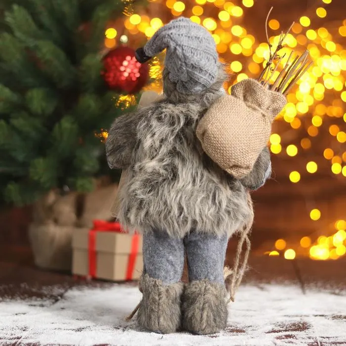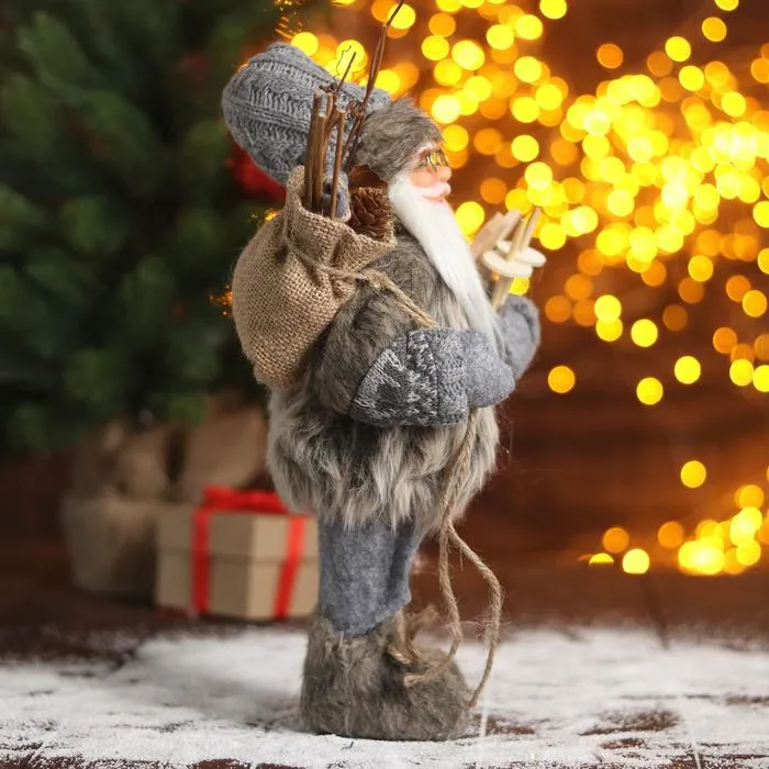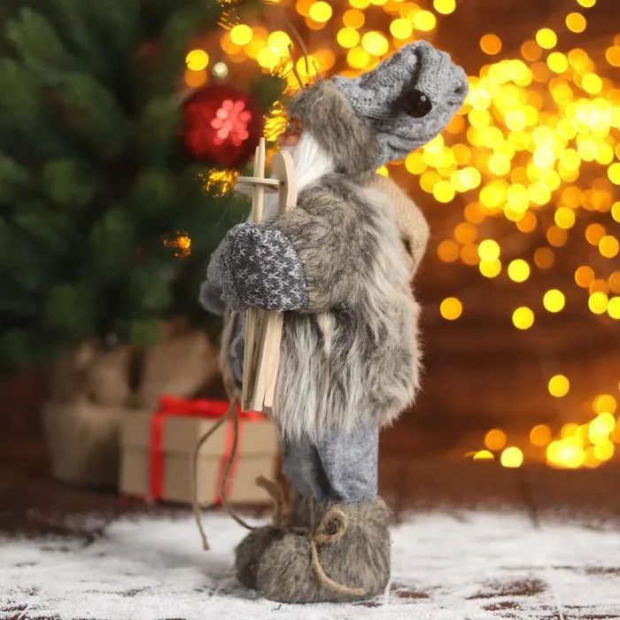Дед Мороз под ёлку «Зимнее волшебство. В сером костюмчике с лыжами», 30 см — Характеристики