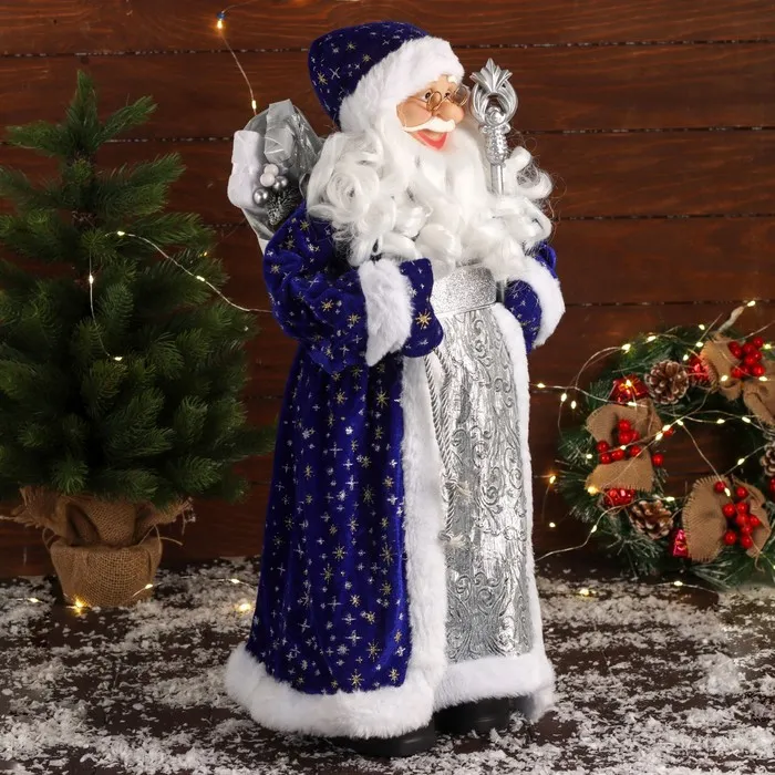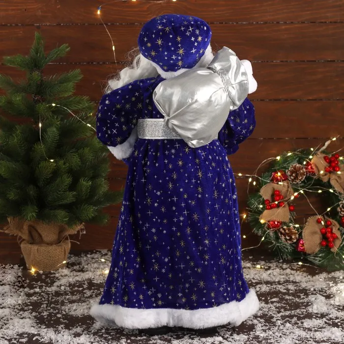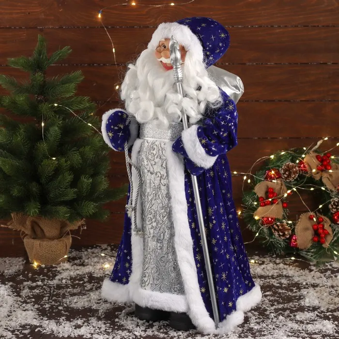 Дед Мороз под ёлку «Зимнее волшебство. В шубе со звёздами и посохом», 58 см, синий — Характеристики