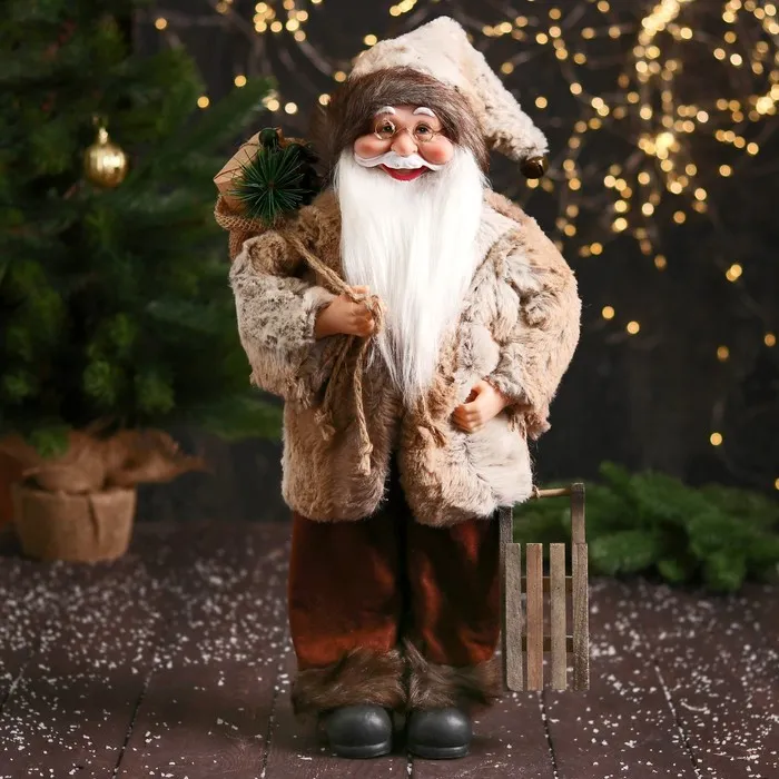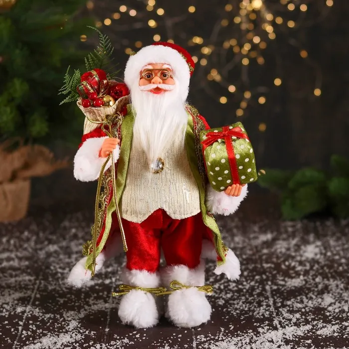 Дед Мороз под ёлку «Зимнее волшебство. В синей подпоясанной шубе, с посохом и подарками», 45 см — Характеристики
