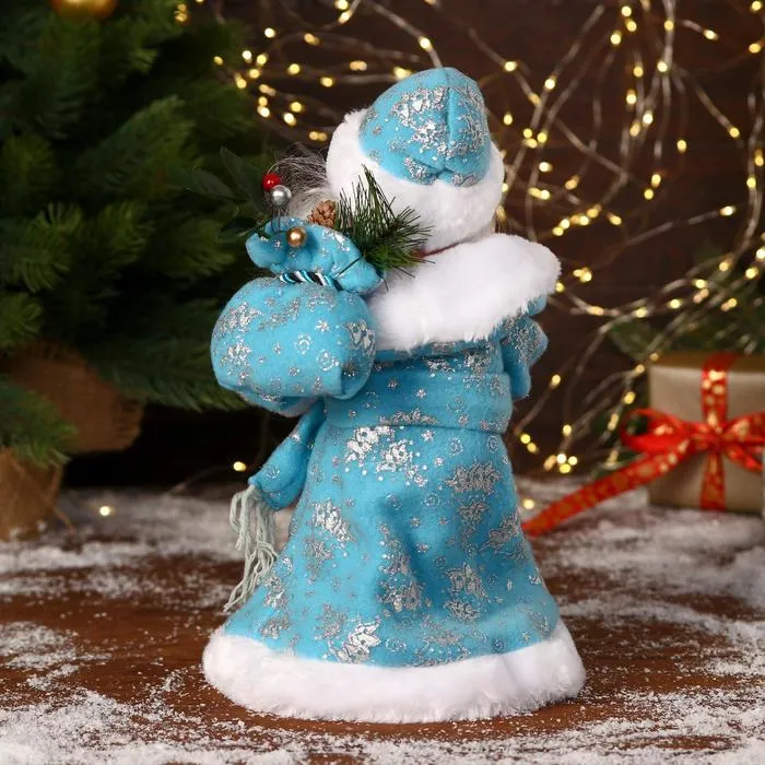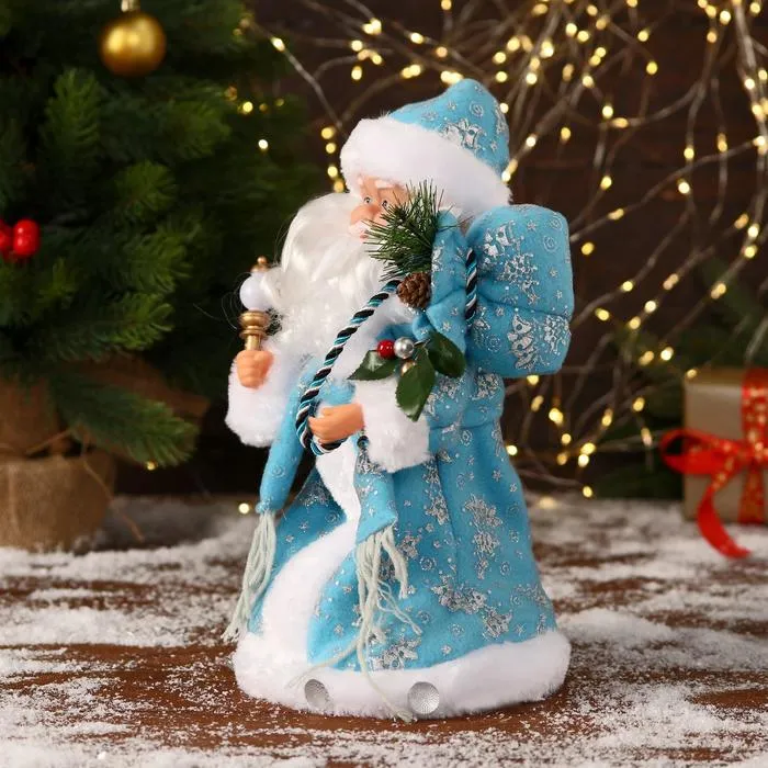 Дед Мороз под ёлку «Зимнее волшебство. В синей шубке с подарками», двигается, с подсветкой, 30 см — Характеристики