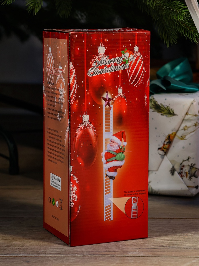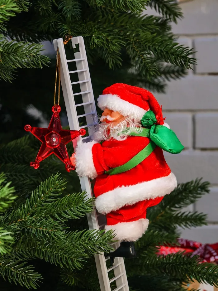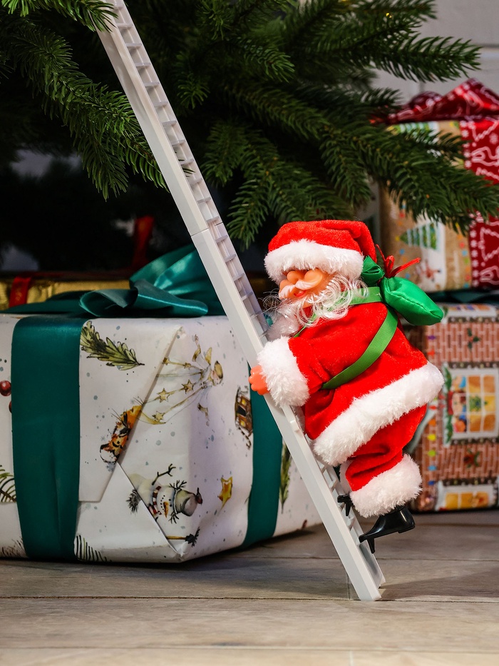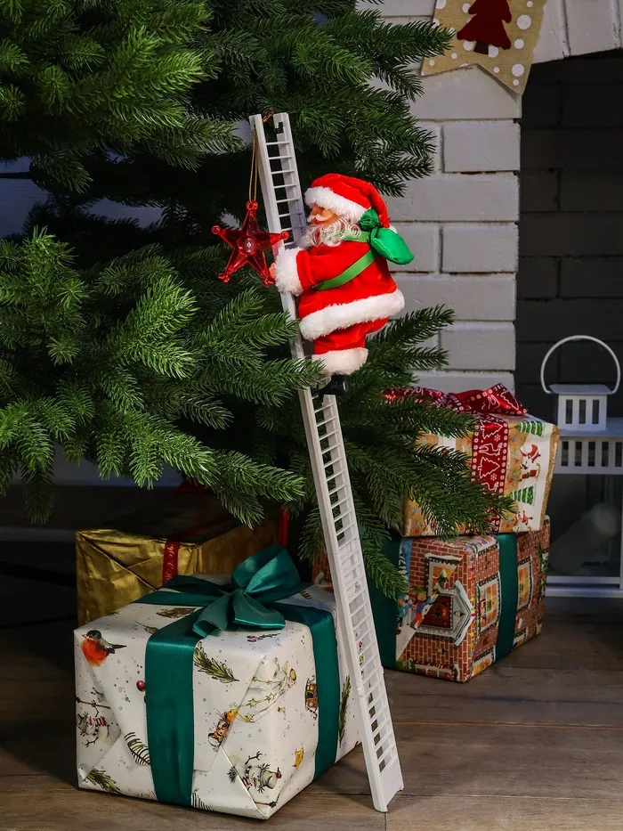 Фигура Деда Мороза высотой 65 см с мешком и лестницей оживит новогодний интерьер за счёт движения и музыкального сопровождения. Этот праздничный декор привносит атмосферу традиционного праздника и помогает создать тёплое настроение.
