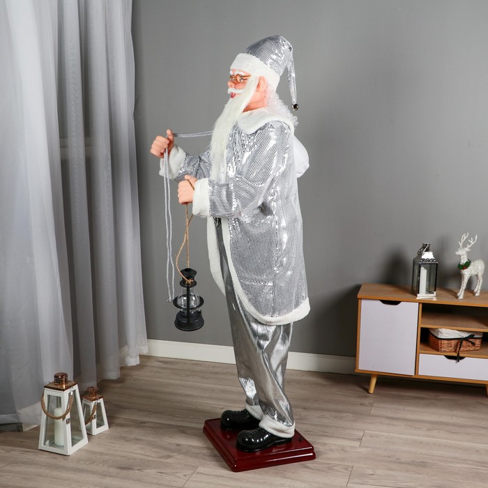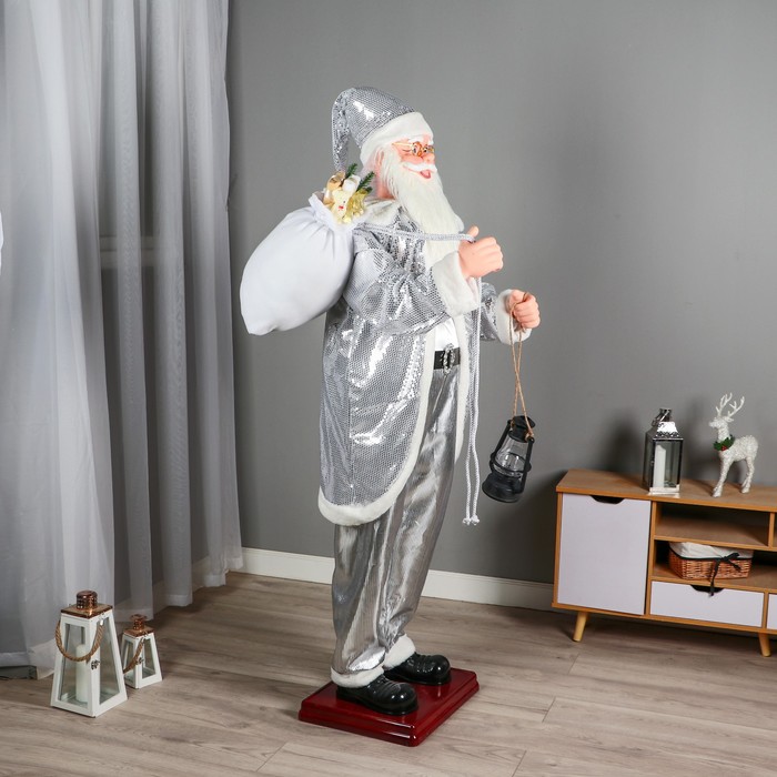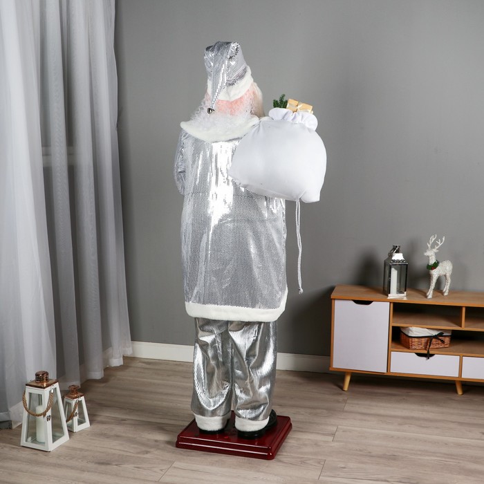 Дед Мороз «С мешком» реакция на движение, танцует, 180 см, серебро — Характеристики