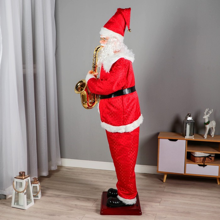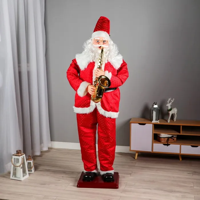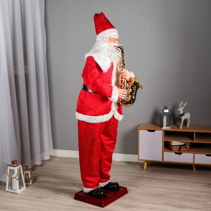 Дед Мороз "С саксофоном" реакция на движение, танцует, 180 см, красный — Характеристики