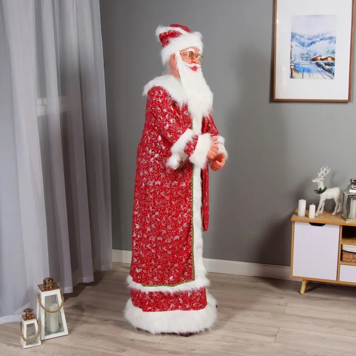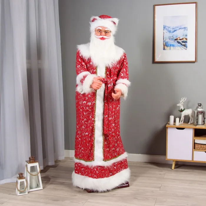 Ростовая фигура Деда Мороза в длинной красной шубе — эффектный элемент праздничного декора, который привносит в интерьер ощущение зимней сказки и торжественного настроения. Высота 180 см позволяет создать выразительный акцент в любой комнате или общественном пространстве. Музыкальное сопровождение и плавные движения делают образ живым, добавляя интерактивности и привлекая внимание гостей. Стиль новогоднего барокко подчёркивает традиционную атмосферу праздника, сочетая роскошь и уют.