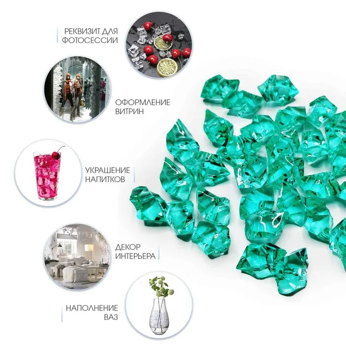 Декор акрил «Искусственный лед», 25×18 мм, 260 шт., бирюзовый — Характеристики
