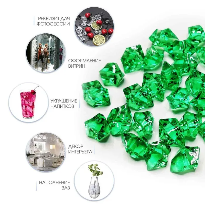 Декор акрил «Искусственный лед», 25×18 мм, 260 шт., зелёный — Характеристики