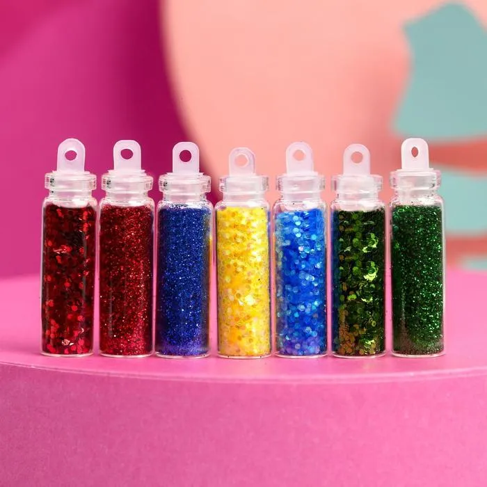 Блёстки для декора «Сияние», набор 12 бутылочек, средние, разноцветные