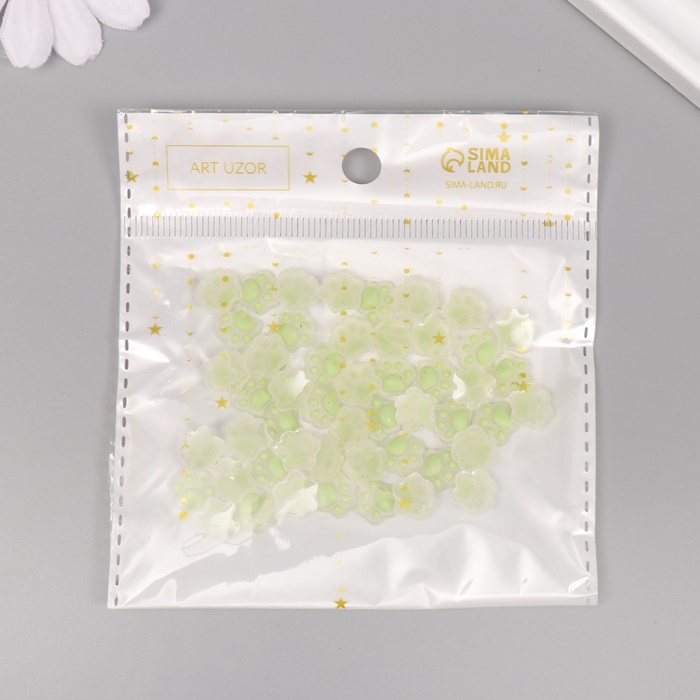 Декор для творчества акрил «Лапка», зелёный, светится в темноте, набор 50 шт., 0.8 см — Характеристики