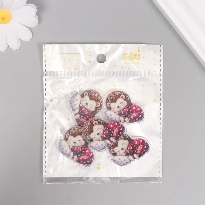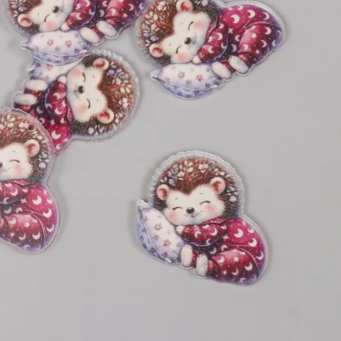 Декор для творчества акрил «Малыш ёжик в пижамке сладко спит на подушке», 2.9×3.4×0.3 см — Характеристики