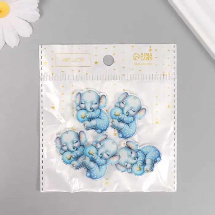 Декор для творчества акрил «Слонёнок в пижамке сладко спит», 2.5×3.4×0.2 см — Характеристики