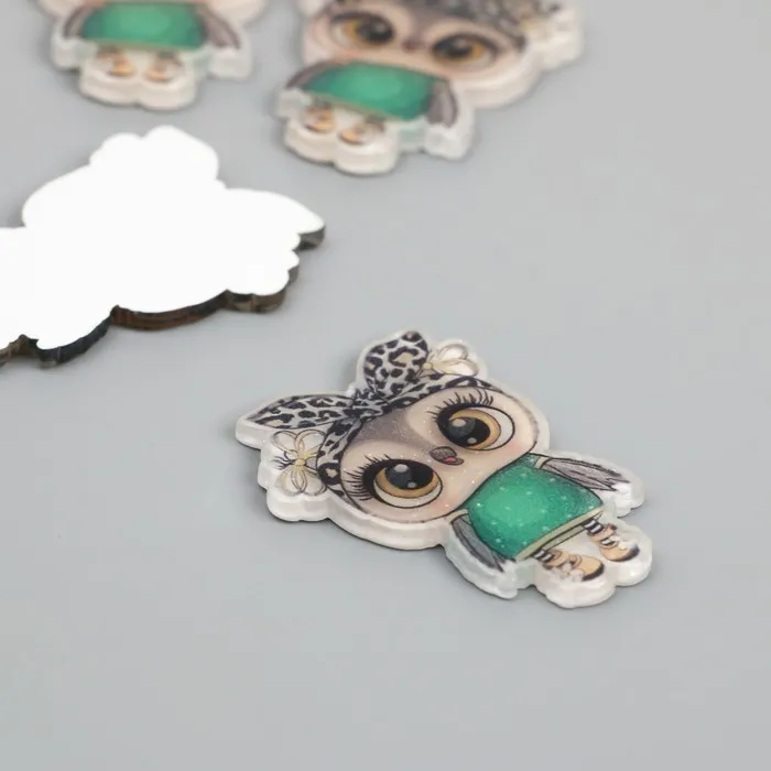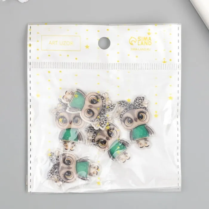 Декор для творчества акрил «Совушка в зелёном платье в бандане», 2.5×3.4 см — Характеристики
