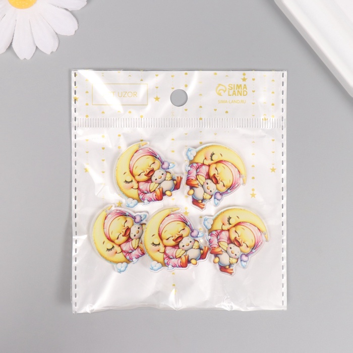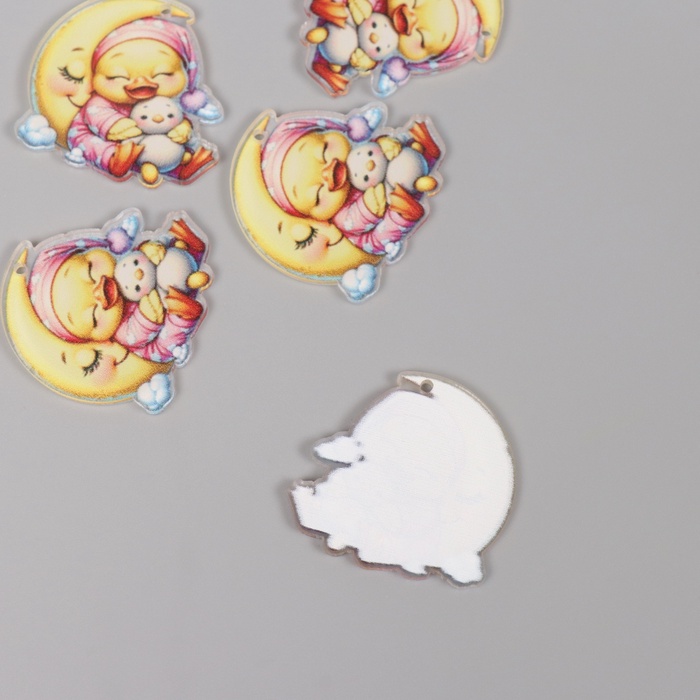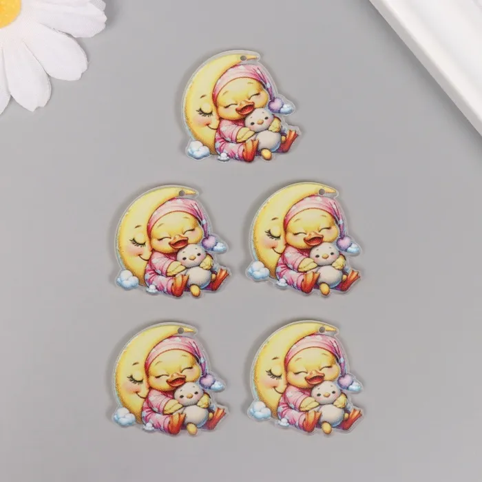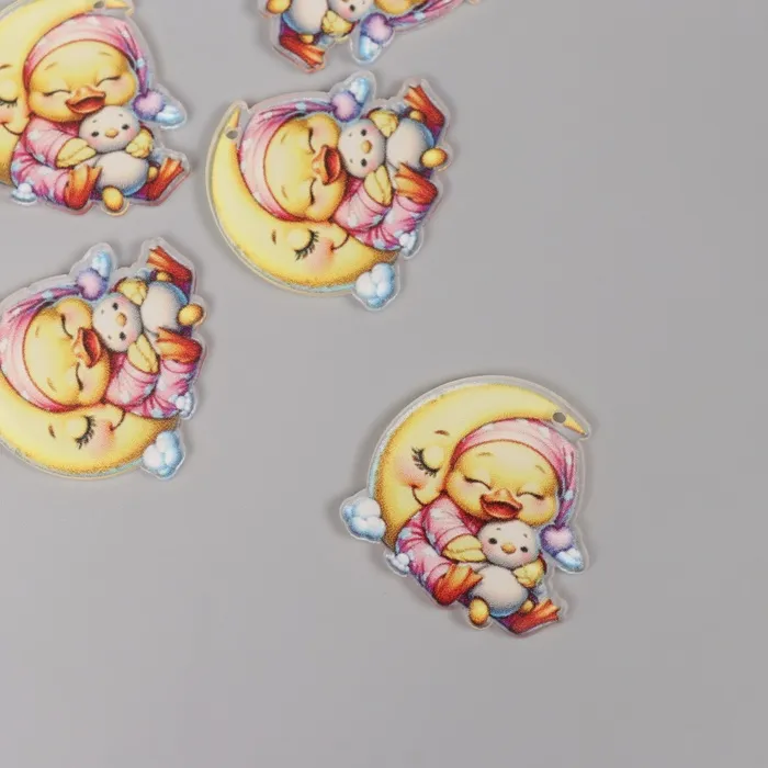 Декор для творчества акрил «Утёнок в пижамке сладко спит на месяце», 3×3×0.2 см — Характеристики