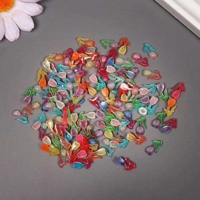 Декор для творчества акрил «Весенний тюльпан», светится в темноте, набор 100 шт., 1.4×0.8 см — Характеристики
