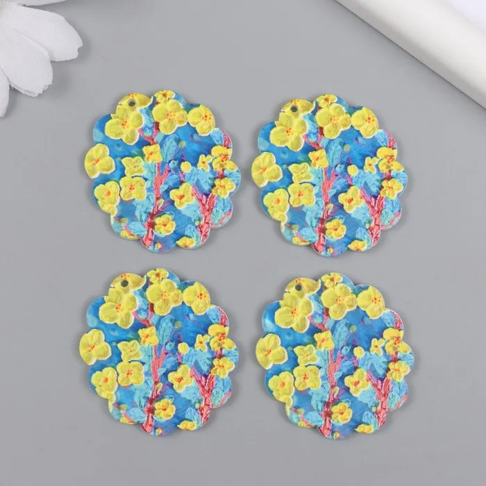 Декор для творчества акрил «Жёлтые цветы на голубом», 0.2×3.5×3.9 см — Характеристики