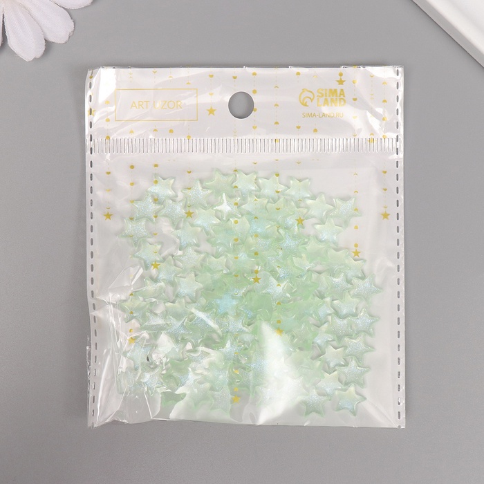 Декор для творчества акрил «Звёзды», зелёный светится в темноте, набор 100 шт., 0.9×0.9 см — Характеристики