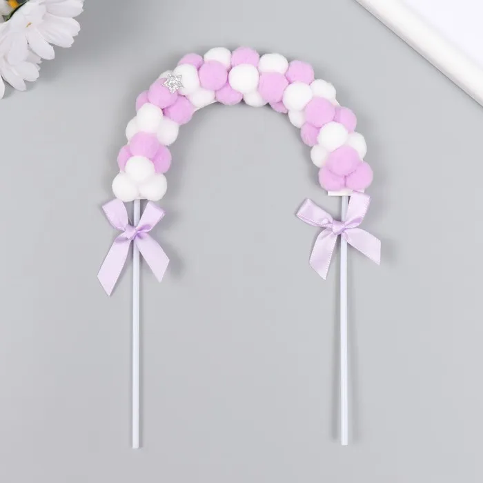 Декор для творчества «Арка из помпонов», бело-сиреневая, 20×14 см