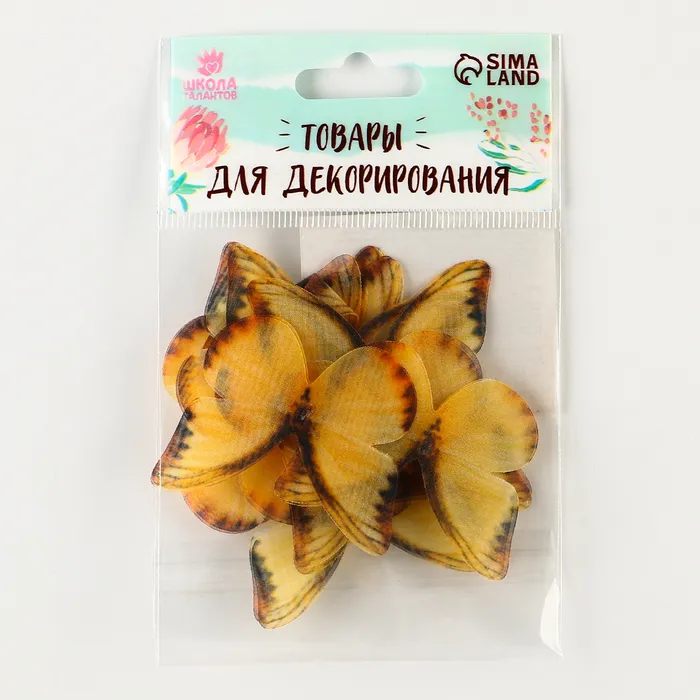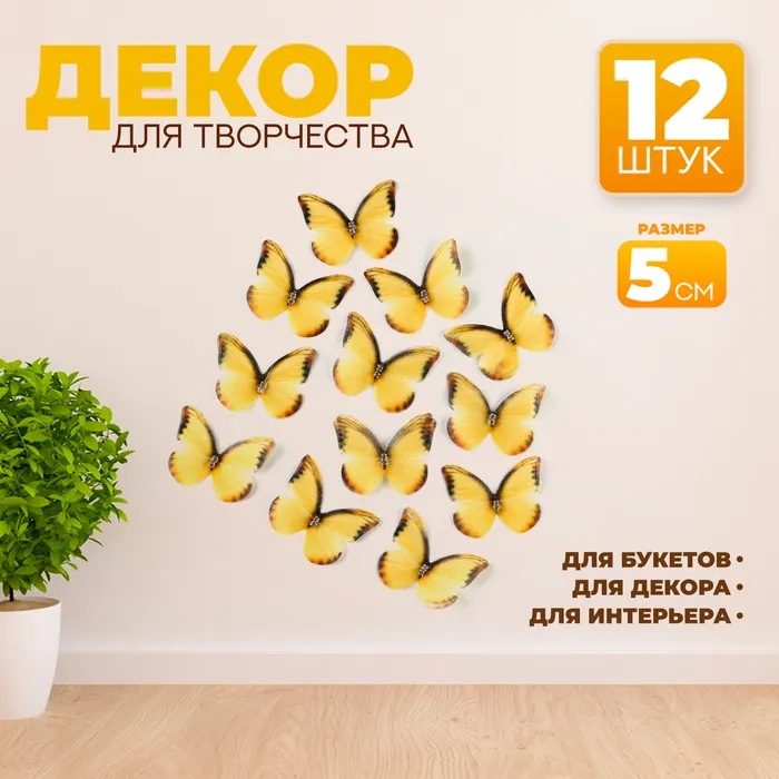 Декор для творчества «Бабочка», двухслойный, набор 12 шт., размер 1 шт. — 5 × 4 см, цвет жёлтый — Характеристики