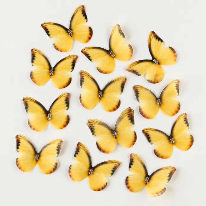 Декор для творчества «Бабочка», двухслойный, набор 12 шт., размер 1 шт. — 5 × 4 см, цвет жёлтый
