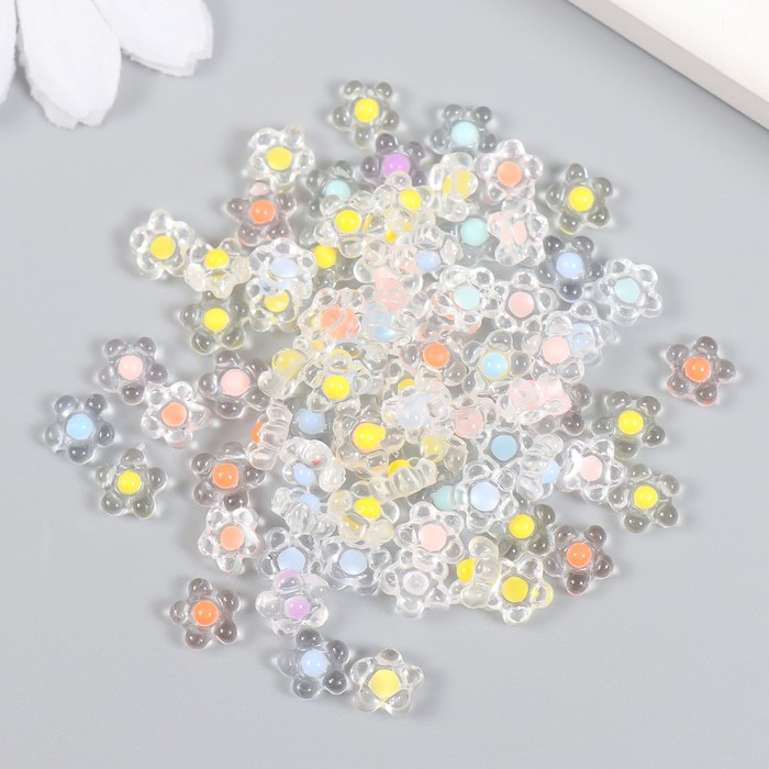 Декор для творчества пластик «Цветок с цветной серединкой», глянец, набор 80 шт., 0.7×0.7 см