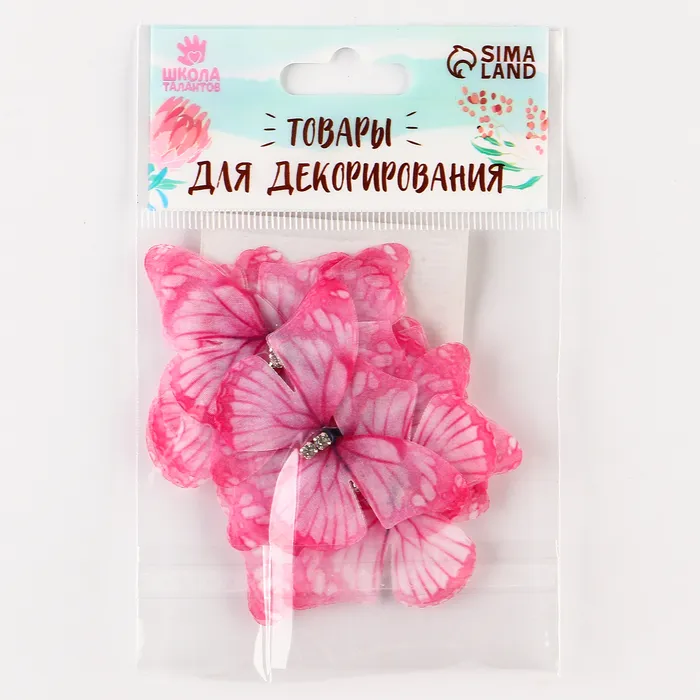 Декор для творчества «Бабочка», двухслойный, набор 12 шт., размер 1 шт. — 5×4 см, цвет розовый — Характеристики