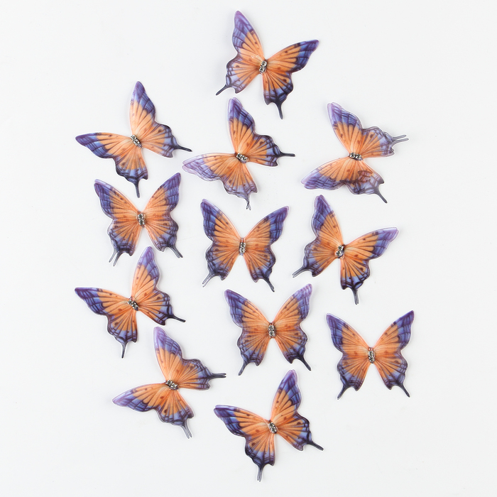 Декор для творчества «Бабочка огнёвка», двухслойный, набор 12 шт., размер 1 шт. — 5 × 5 см