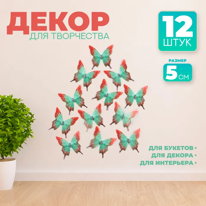 Декор для творчества «Бабочка пеструшка», двухслойный, набор 12 шт., размер 1 шт. — 5 × 5 см — Характеристики