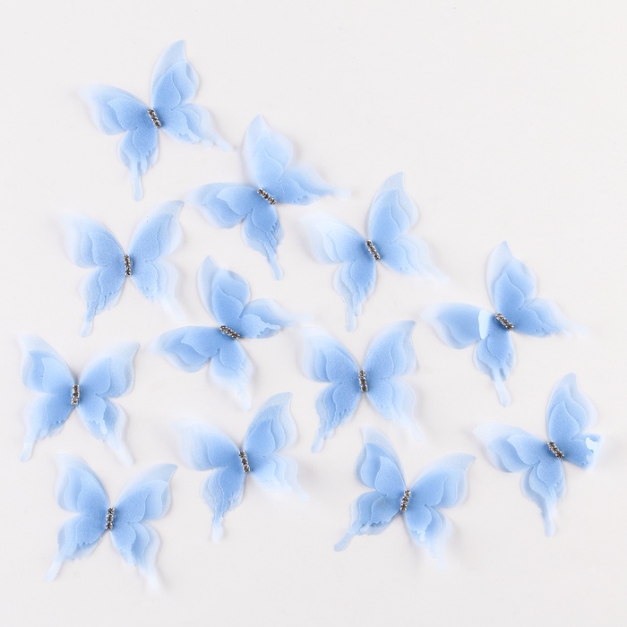 Декор для творчества «Бабочка», трёхслойный, набор 12 шт., размер 1 шт. — 5×4.5 см, цвет голубой