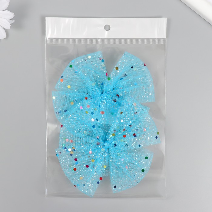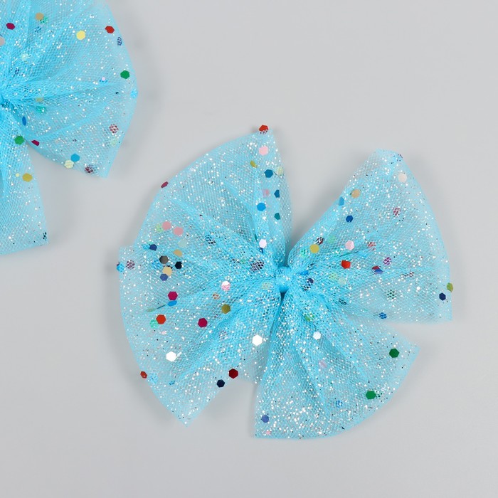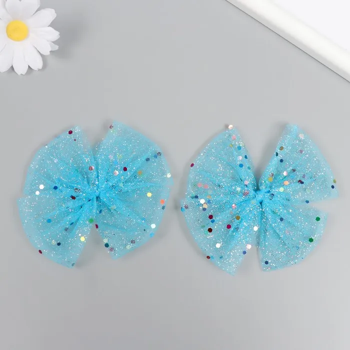 Декор для творчества "Бант из Фатина" голубой, 9 см (набор 2 шт)