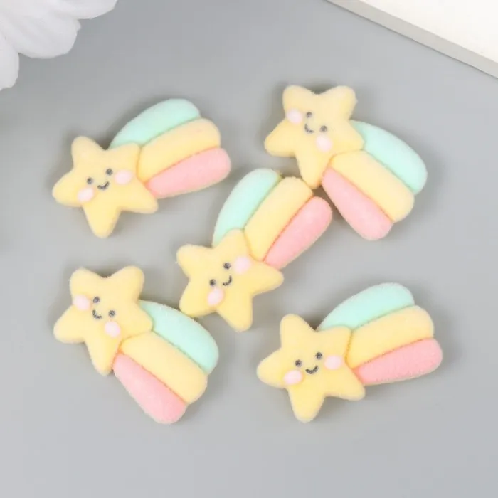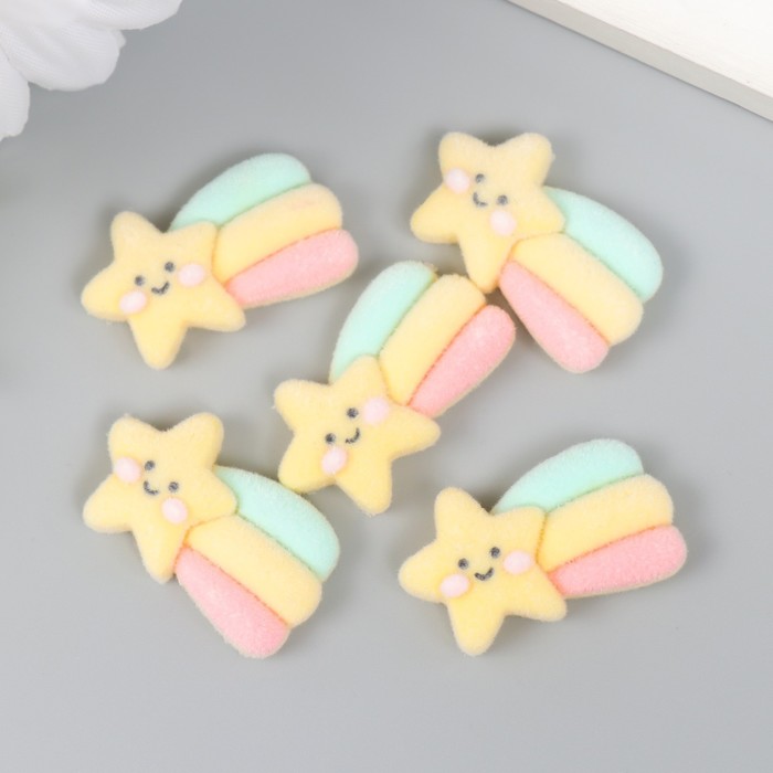 Декор для творчества бархатное напыление «Звезда-смайл с радугой», 0.6×1.8×2.5 см