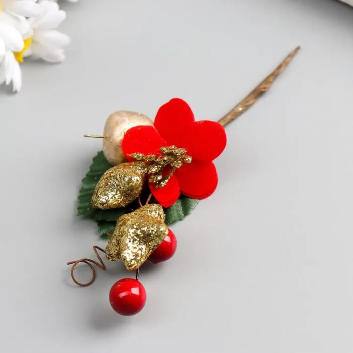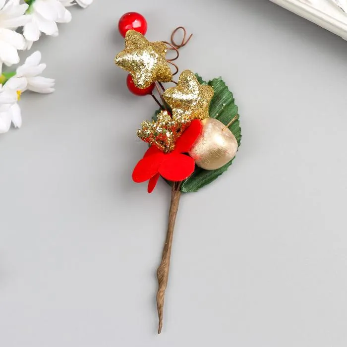Декор для творчества "Букетик с красным цветком, звездой и яблочком" 11,5 см