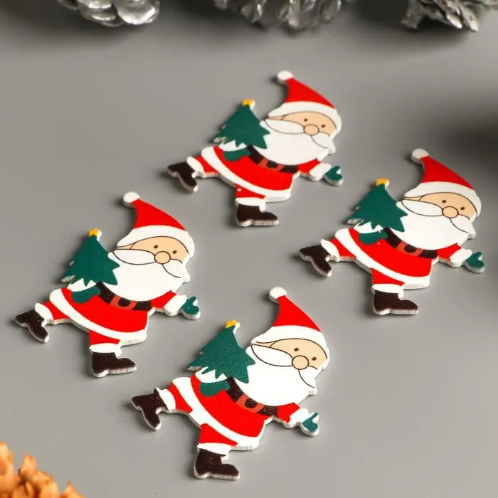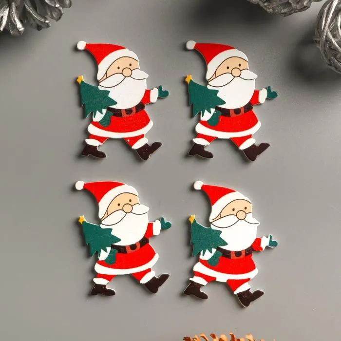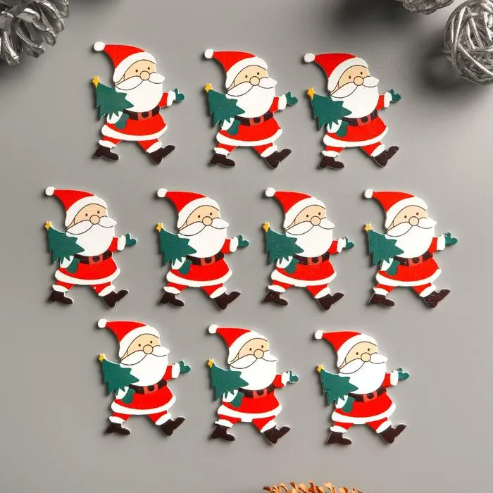 Декор для творчества дерево "Дедушка мороз с ёлкой" набор 10 шт 4,2х3,4 см — Характеристики
