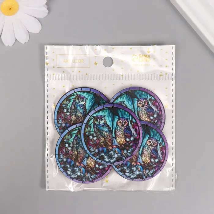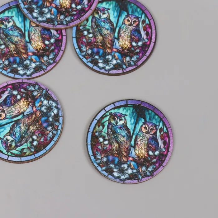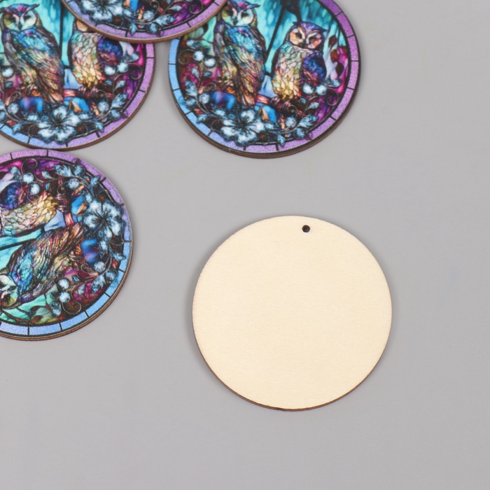 Декор для творчества дерево «Две совы в ночном лесу», 4.6×4.6×0.3 см — Характеристики