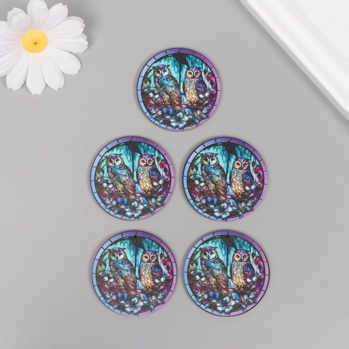 Декор для творчества дерево «Две совы в ночном лесу», 4.6×4.6×0.3 см