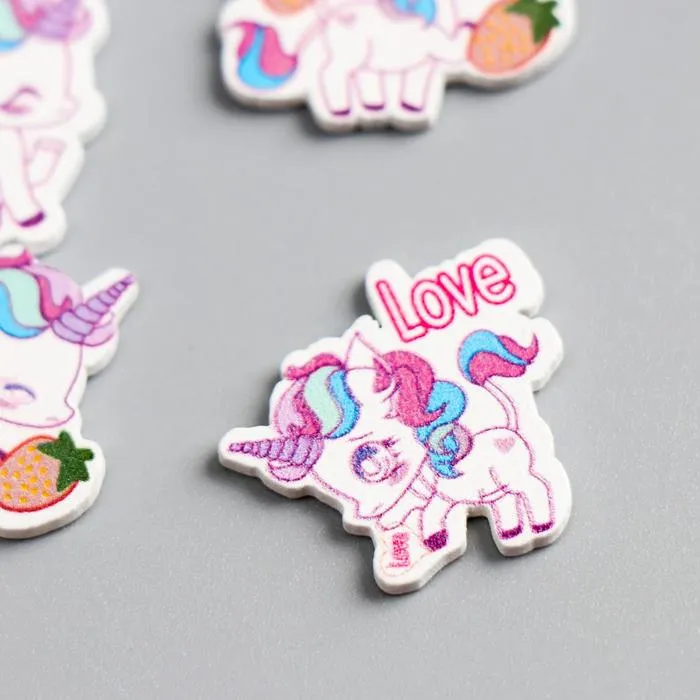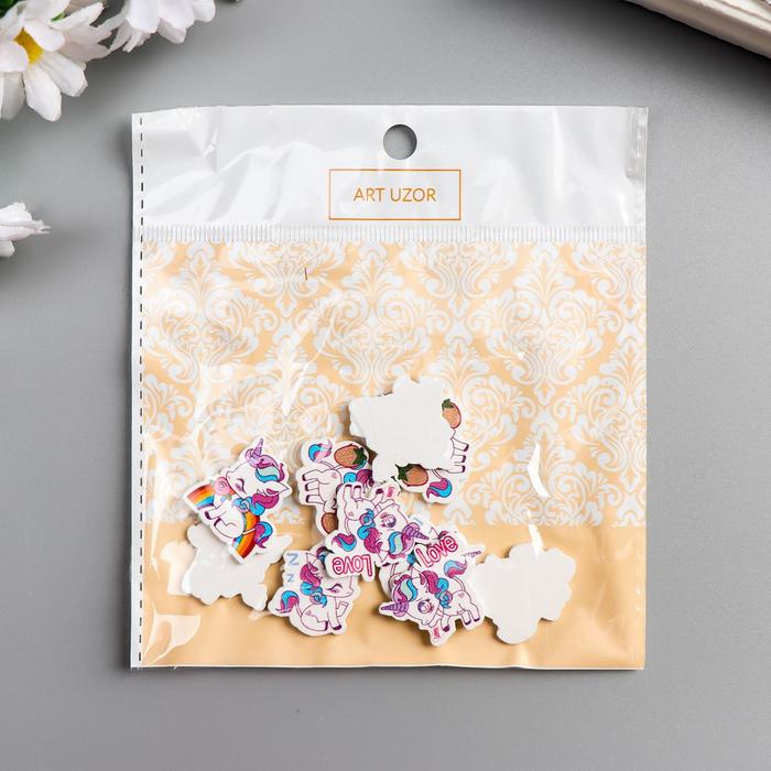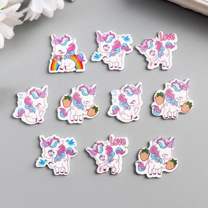 Декор для творчества дерево «Единороги и радуга», набор 10 шт., 2.2×2.4 см