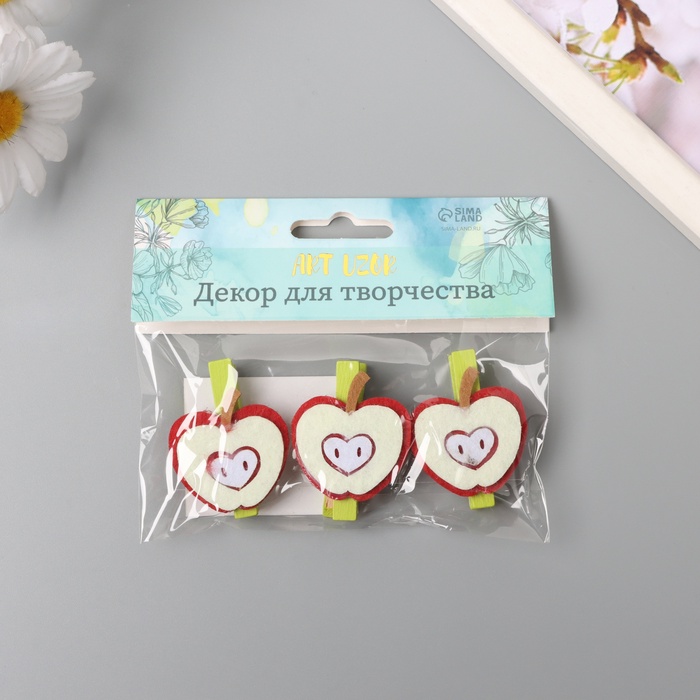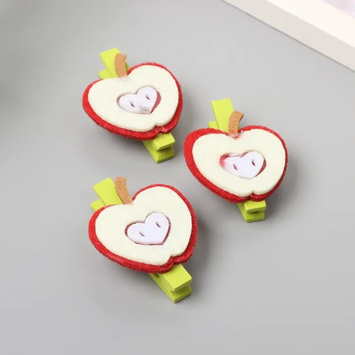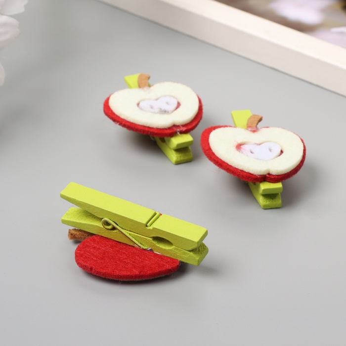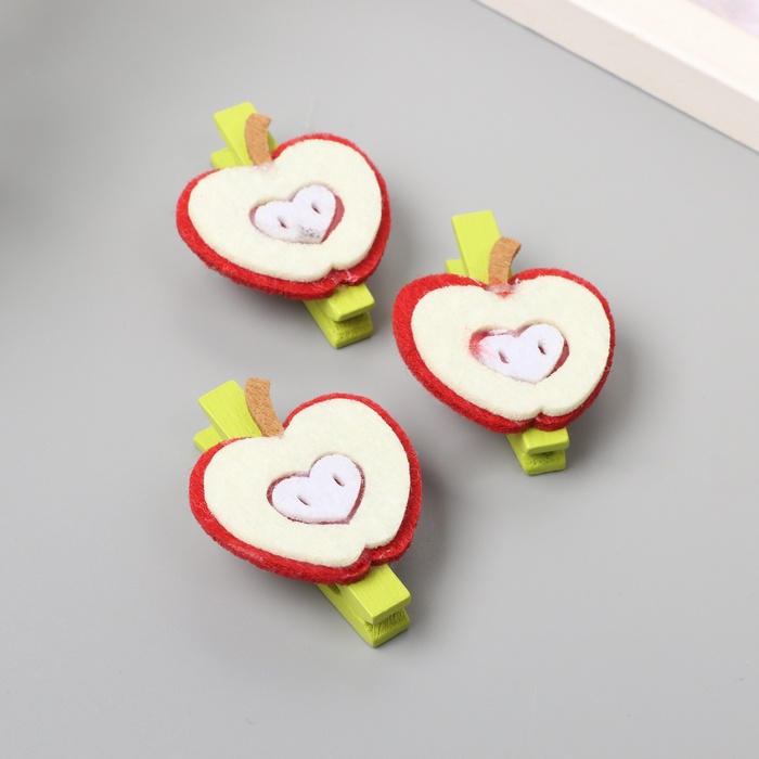 Декор для творчества дерево, фетр «Прищепка. Половинка яблока», набор 3 шт., 1.3×3.5×4.8 см