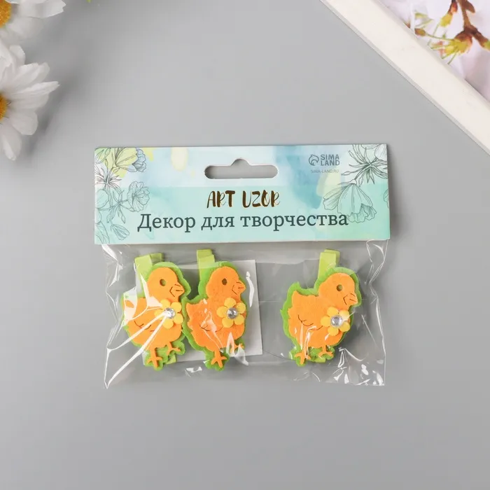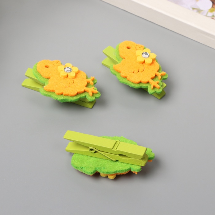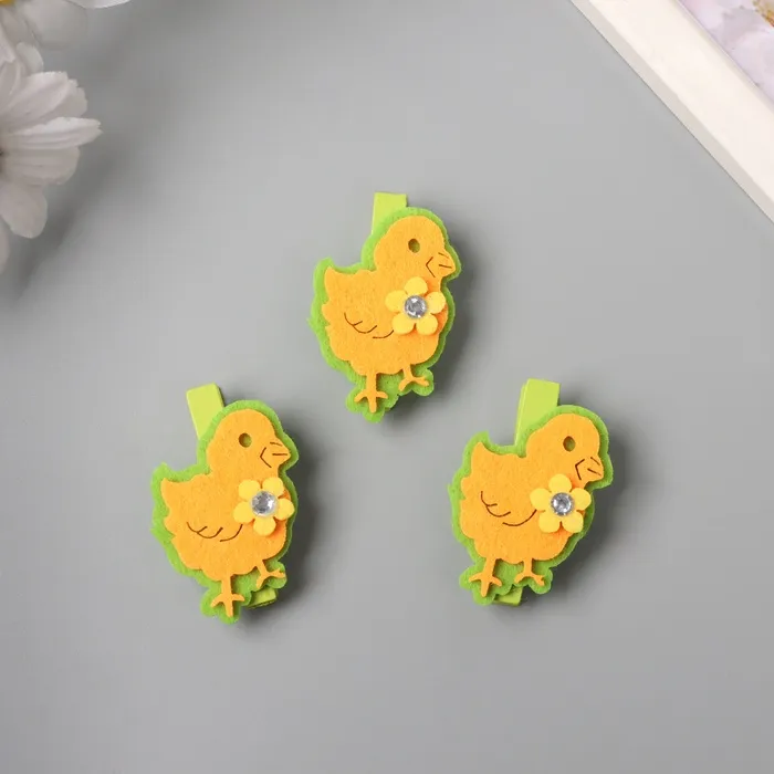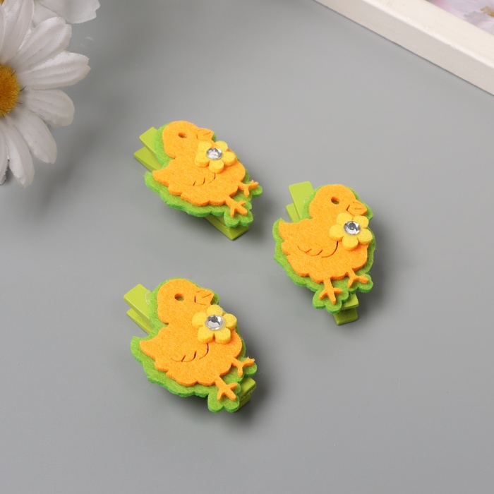 Декор для творчества дерево, фетр "Прищепка. Цыплёнок с цветочком" набор 3 шт 1,8х3х5,1 см 1047339