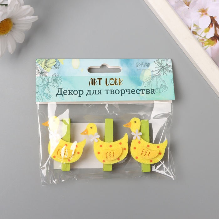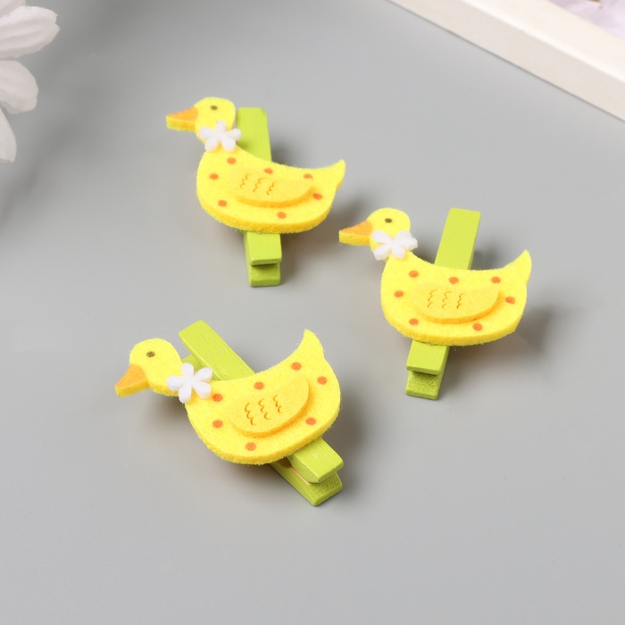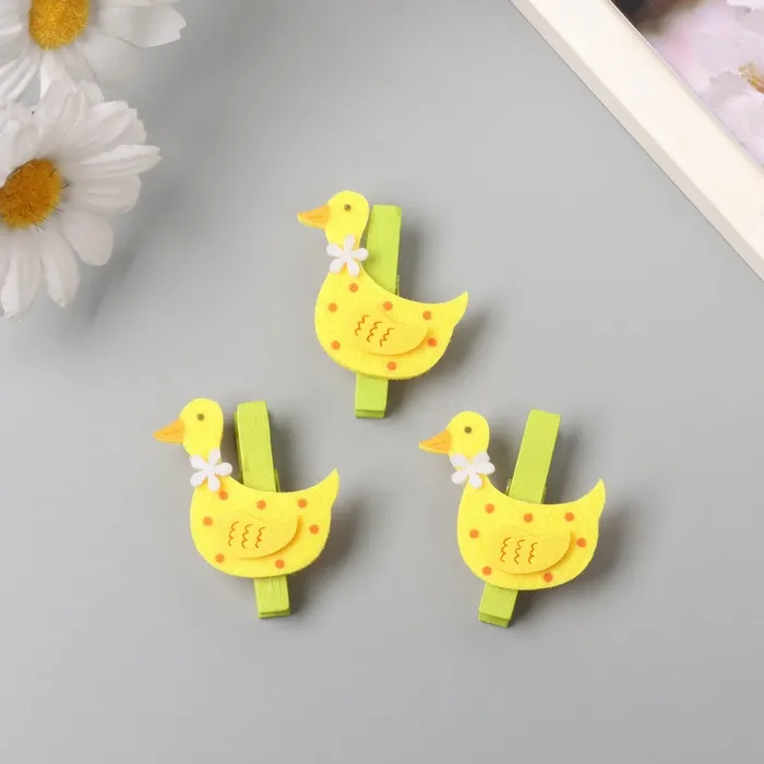 Декор для творчества дерево, фетр «Прищепка. Уточка с цветочком», набор 3 шт., 1.8×4×4.9 см