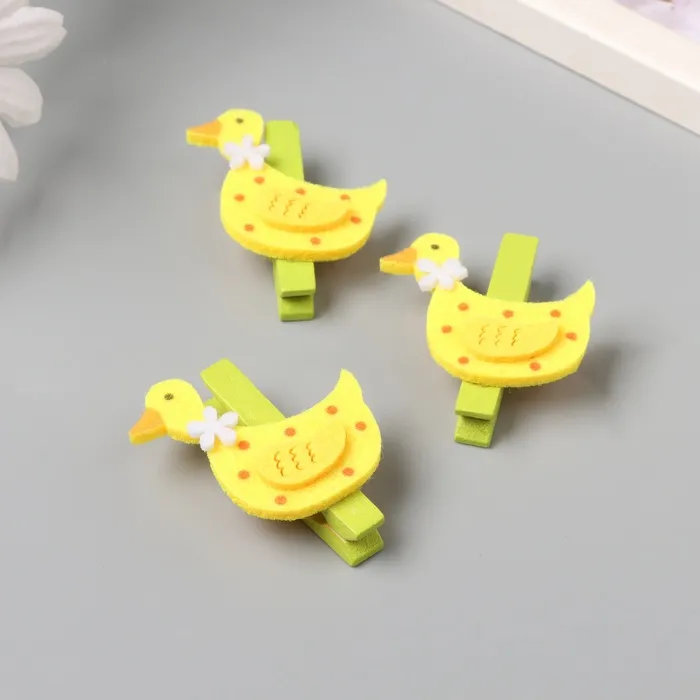 Декор для творчества дерево, фетр «Прищепка. Уточка с цветочком», набор 3 шт., 1.8×4×4.9 см — Характеристики