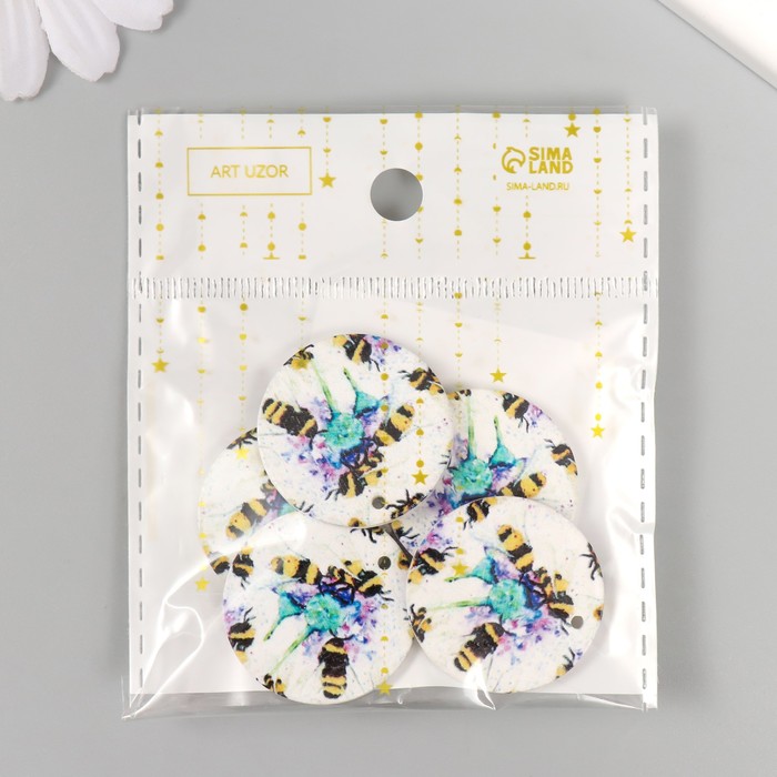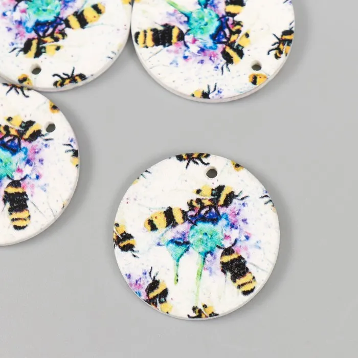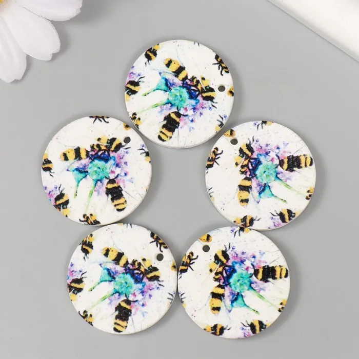 Декор для творчества дерево «Круг. Пчёлки на цветах», d=3 см