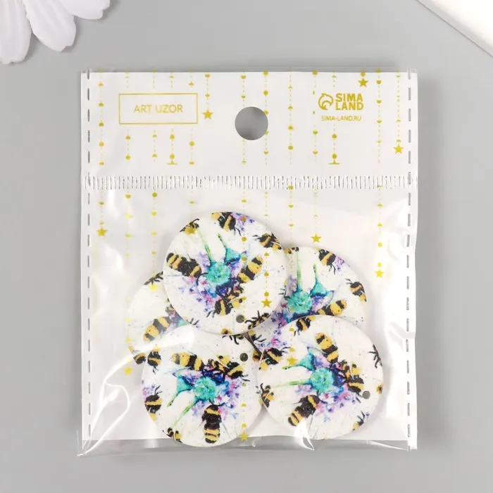 Декор для творчества дерево «Круг. Пчёлки на цветах», d=3 см — Характеристики